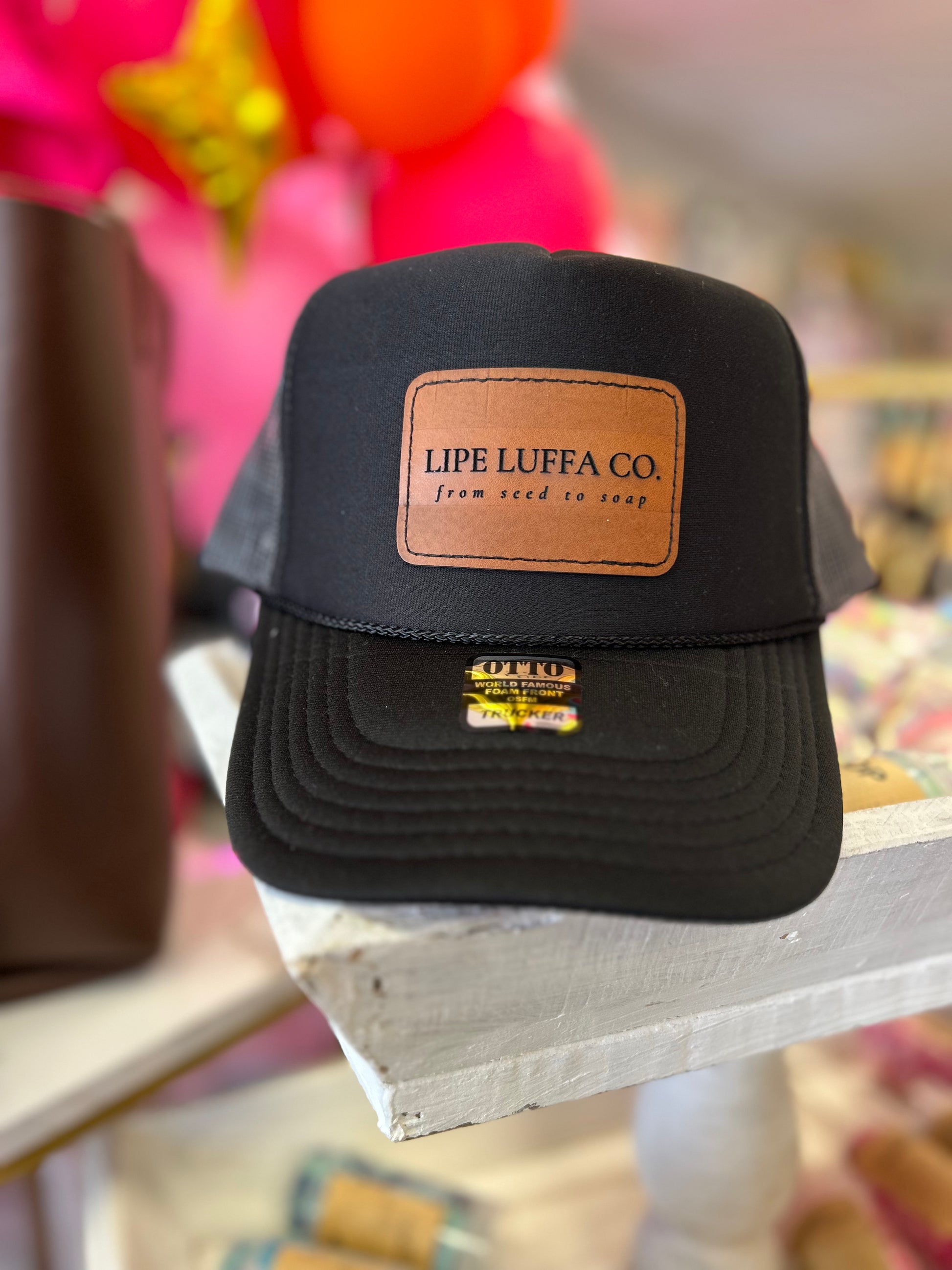 Keep it cool and stylish with our Black Trucker Hat from Lipe Luffa Co. Perfect for any outdoor adventure or just a casual day out! Show off your love for our brand with this must-have merch accessory.